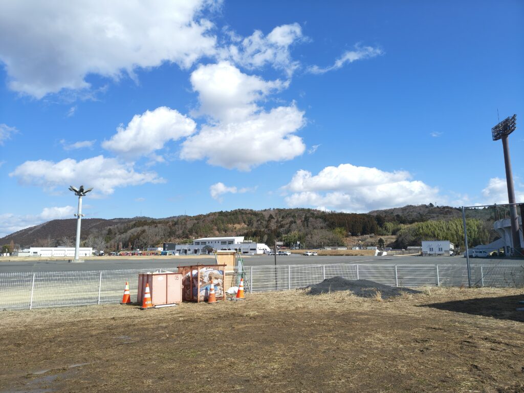 というわけで道なき道を歩き、いよいよ見えてきました。セイホクパーク石巻。前回来た時は大雨でおしまいになってしまったのですが、今回は晴れてよかったです。
