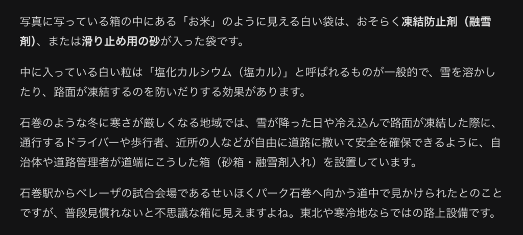 アップするとこんな感じ。これなんだ?と思って調べてみるとですね、そりゃ雪国に暮らしたことがない人にとっては想像もできないことなのですが、Geminiが教えてくれました。